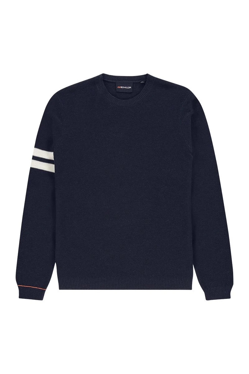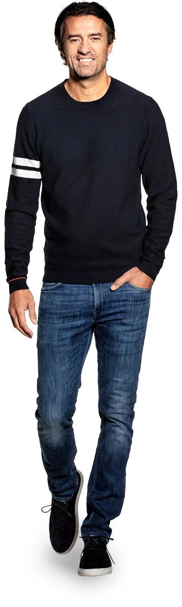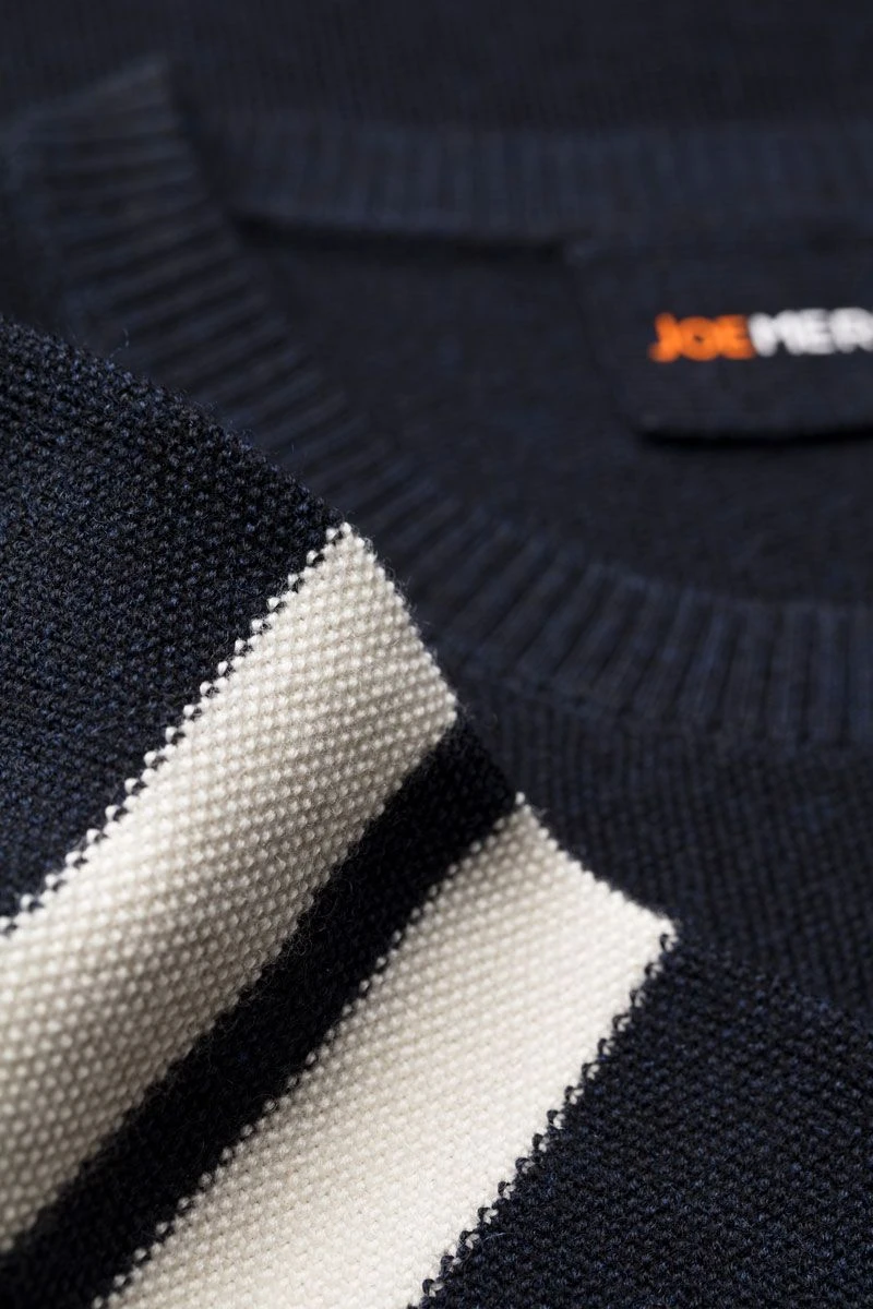 Deze Bee heeft als basis onze klassieke True Navy. De strepen zijn Wool White, een sportieve combinatie.