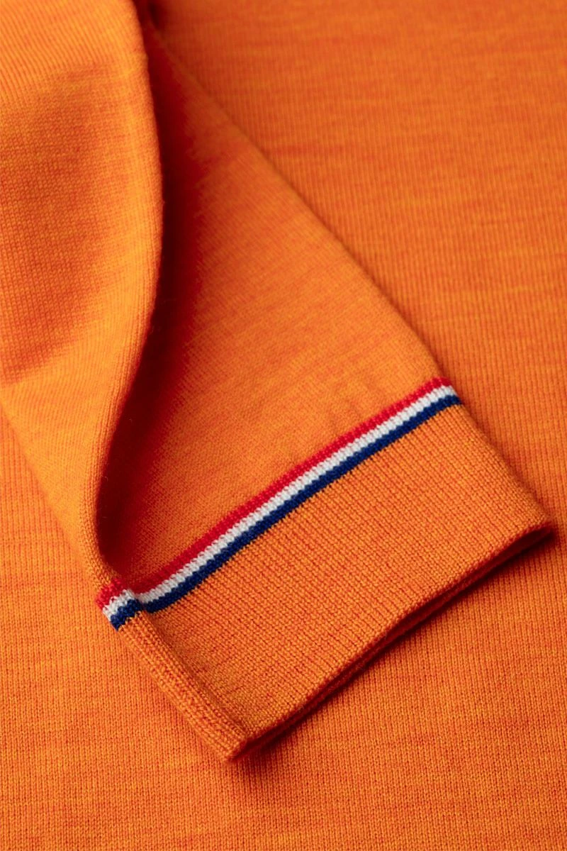 kan geven op gelegenheden met een oranje tintje. Subtiel rood/wit/blauw detail onderaan rechtermouw.