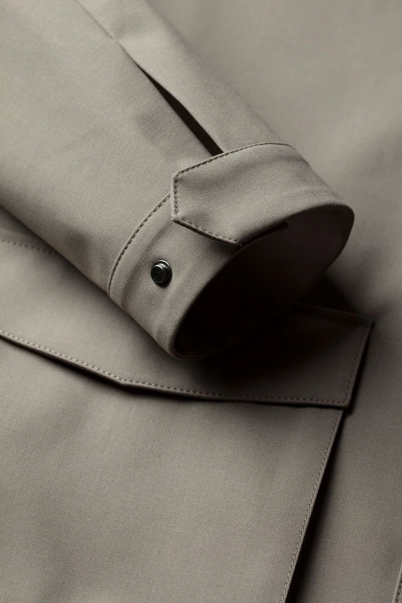 Mooie grijsbruine tint. Stijlvolle variant op de traditionele (beige) trenchcoat kleur.