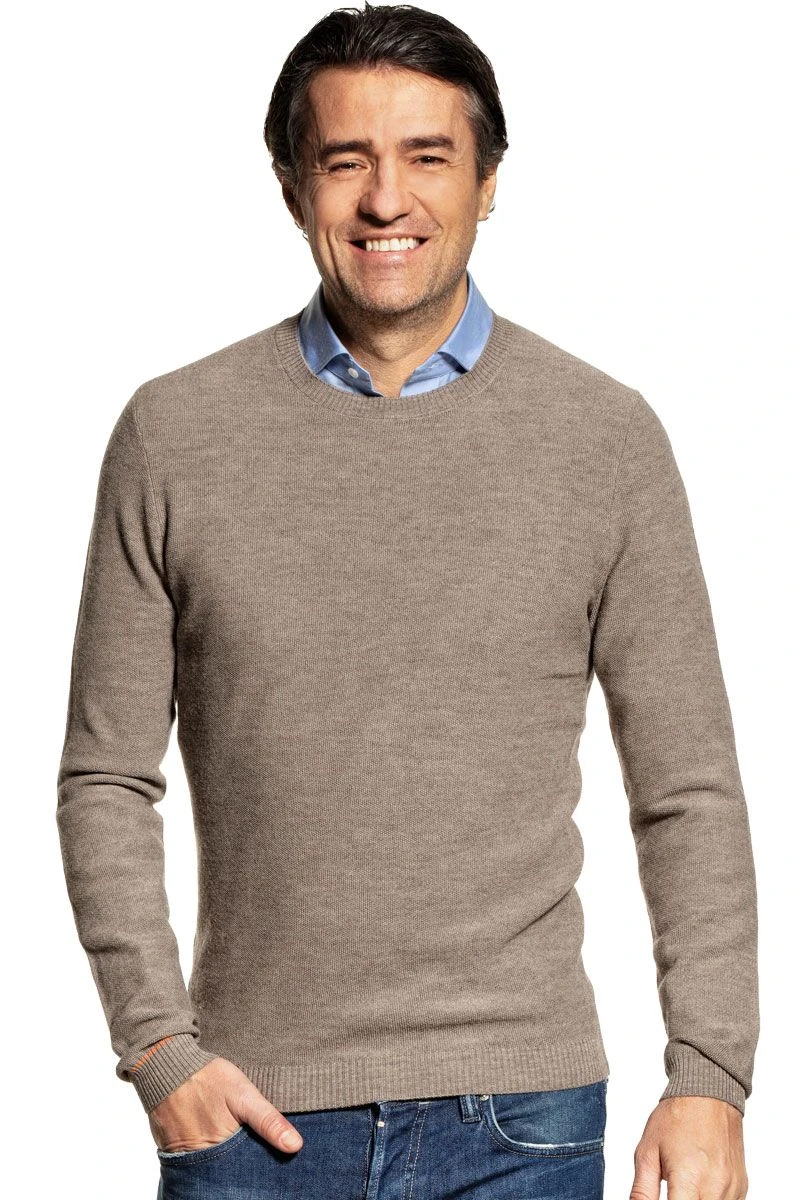 Deze beige bruine natuurlijke kleur is ontstaan door het mengen van de wol van diverse kleuren schapen. in dit geval 50 % bruine schapen en 50 % witte schapen, geen spat verfstof aan te pas gekomen!
