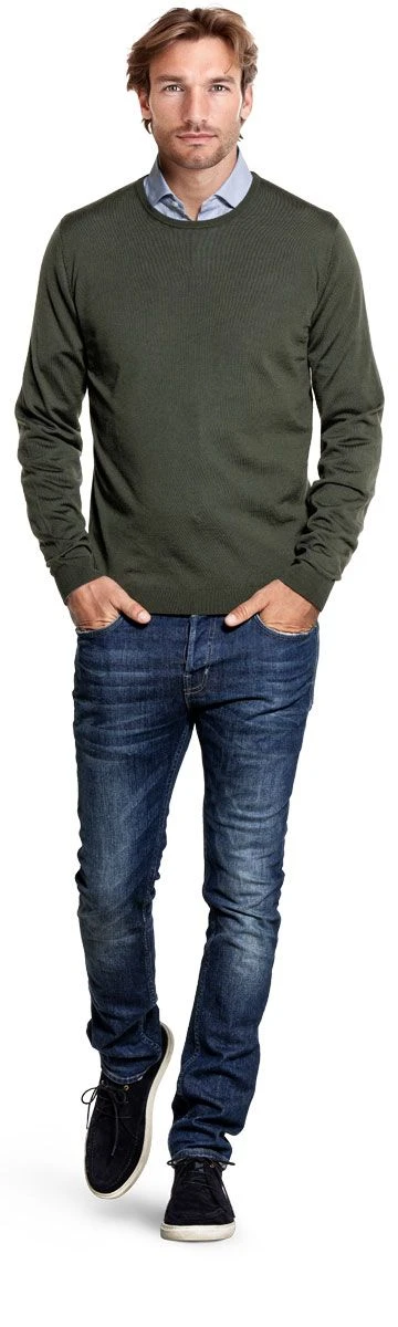 Draag deze kleur traditioneel met een wit of lichtblauw shirt en op een donkere jeans. En… bijzonder geschikt voor verstoppertje spelen in het bos.
