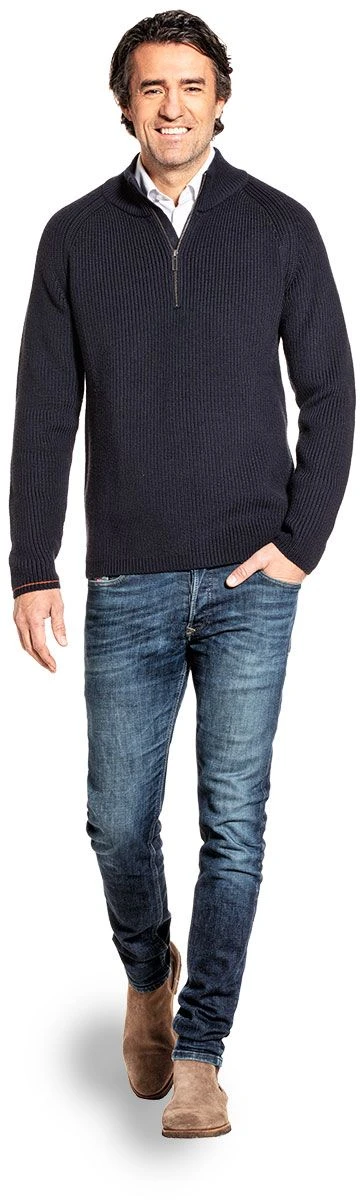 Een bijzondere kleur die klasse uitstraalt. Moeilijk te omschrijven maar als het echt moet: navy gemengd met antraciet.
