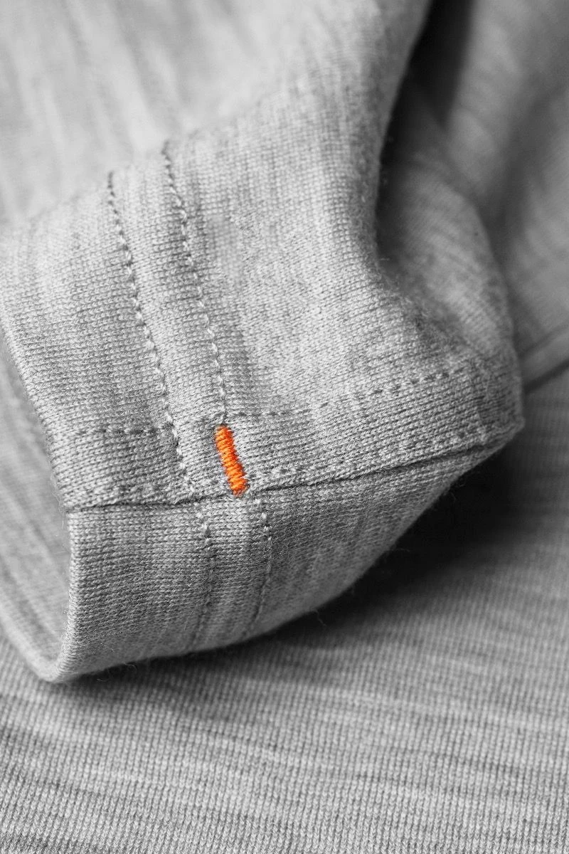 Sportieve lichtgrijze variant. Door de combinatie van witte en lichtgrijze garens krijgt de trui de look van een klassiek sweatshirt. Maar dan wel met de verfijning van de merinowol.