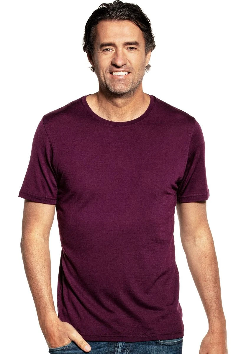 Warme rode kleur met een paarse zweem. Denk aan pinot noir en haardvuur.