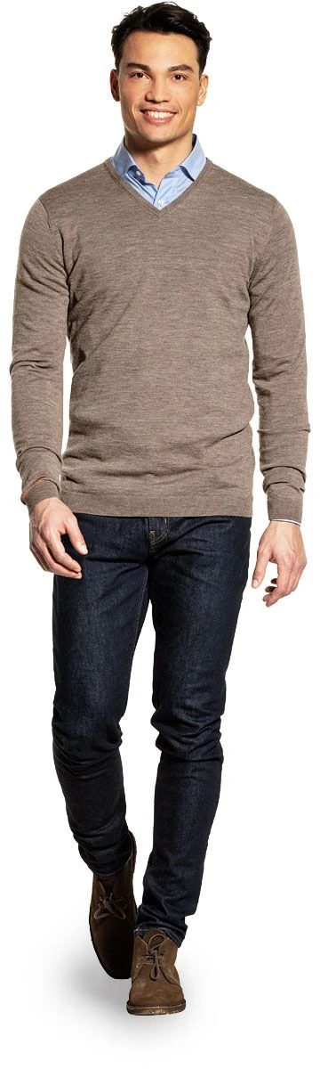 Deze bruine natuurlijke kleur is ontstaan door het mengen van de wol van diverse kleuren schapen. in dit geval 75% bruine schapen en 25% witte schapen, geen spat verfstof aan te pas gekomen!