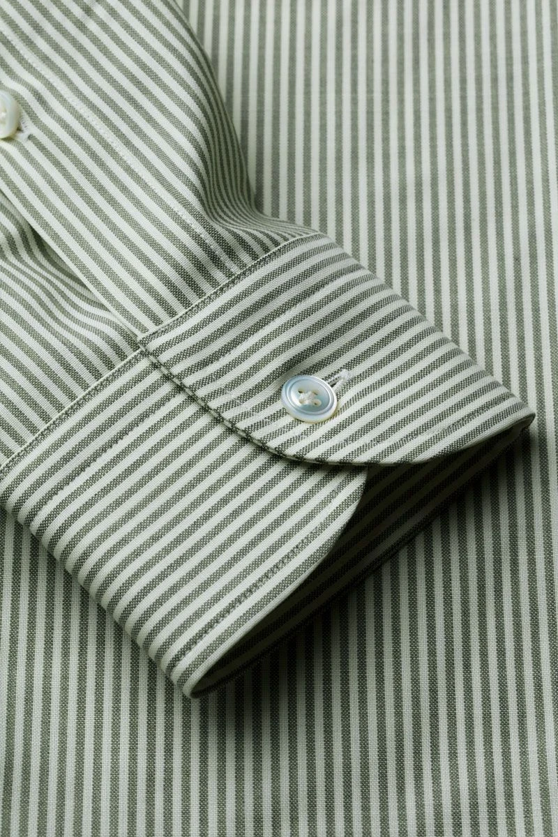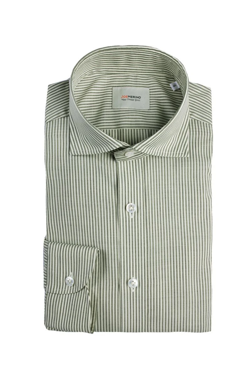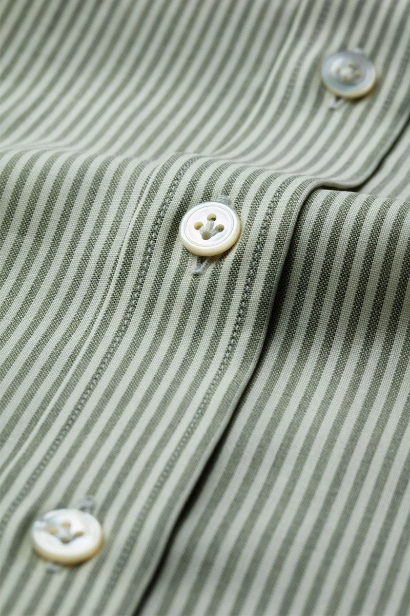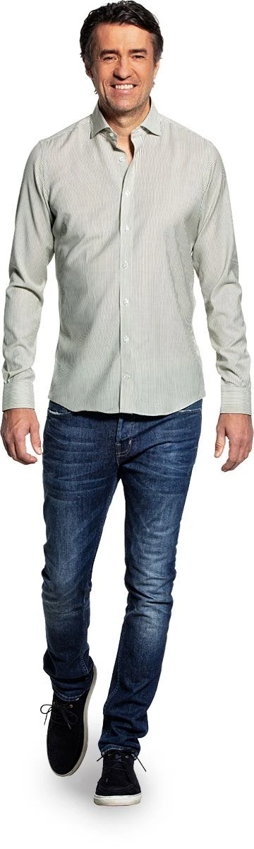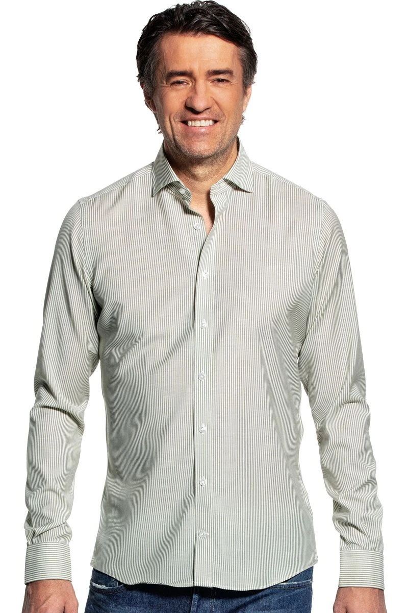 Klassiek shirt met een mooie contrasterende kaki streep. Oogt fris. Voor iedereen die