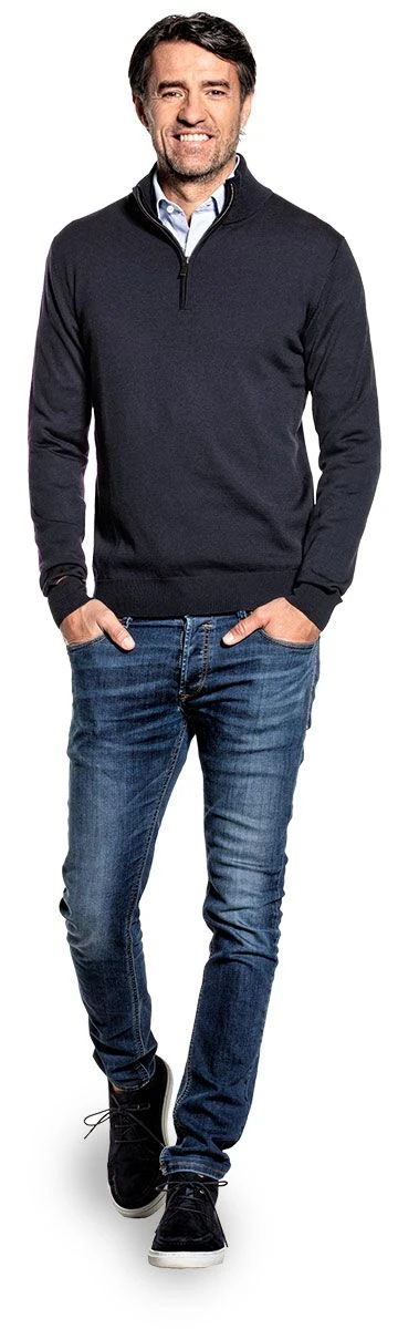 Een bijzondere kleur die klasse uitstraalt. Moeilijk te omschrijven maar als het echt moet : navy gemengd met antraciet.