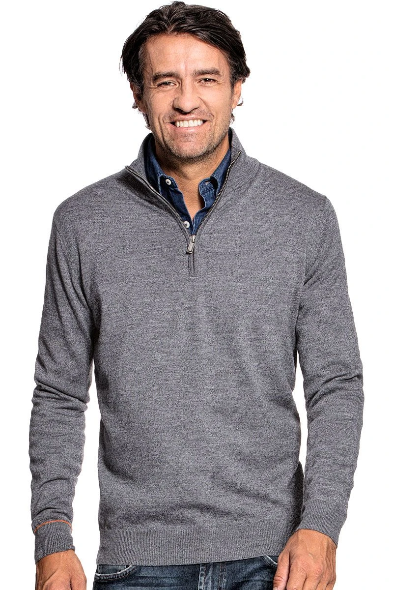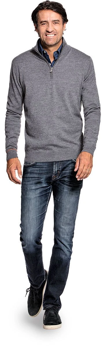 Deze kleur is stevig gemêleerd. Door de licht- en donkergrijze mix krijgt de trui een stoere uitstraling.