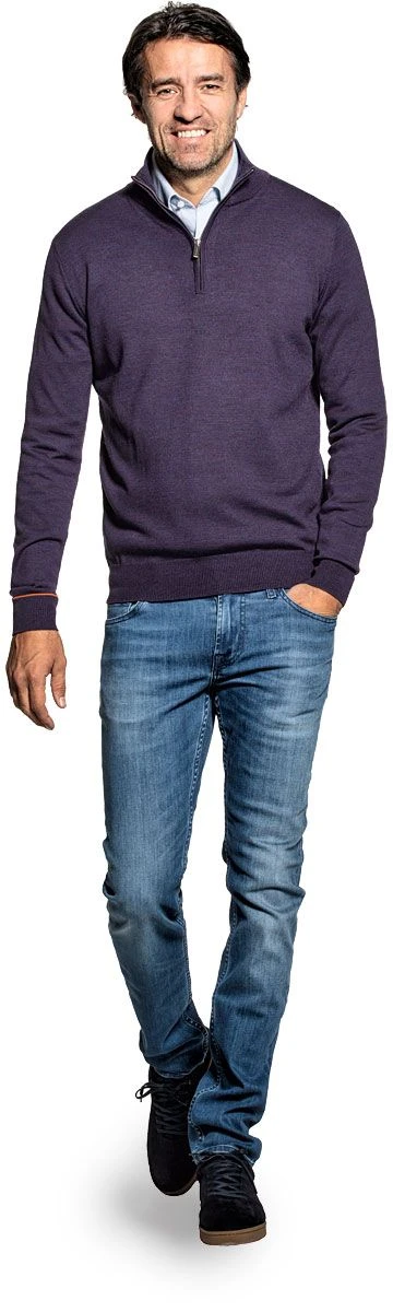 Statige donkere kleur paars. Door de donkerblauwe ondertoon bijzonder goed te combineren met donkere jeans, donker haar of donkere ogen.
