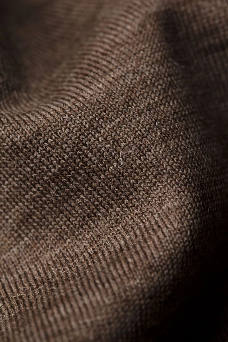Deze diepbruine natuurlijke kleur is ontstaan door het mengen van de wol van diverse kleuren schapen. In dit geval 100 % bruine schapen, geen spat verfstof aan te pas gekomen!
