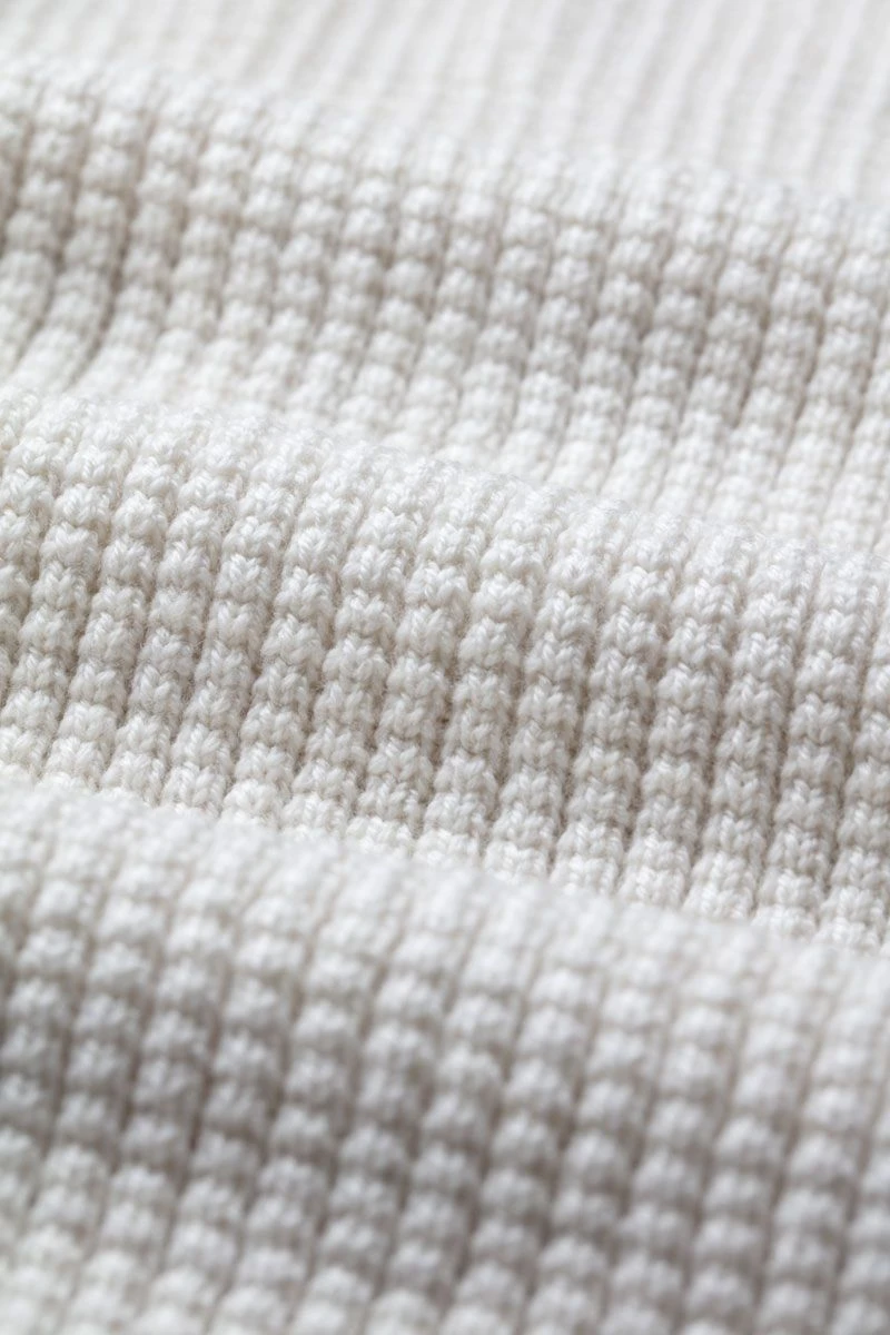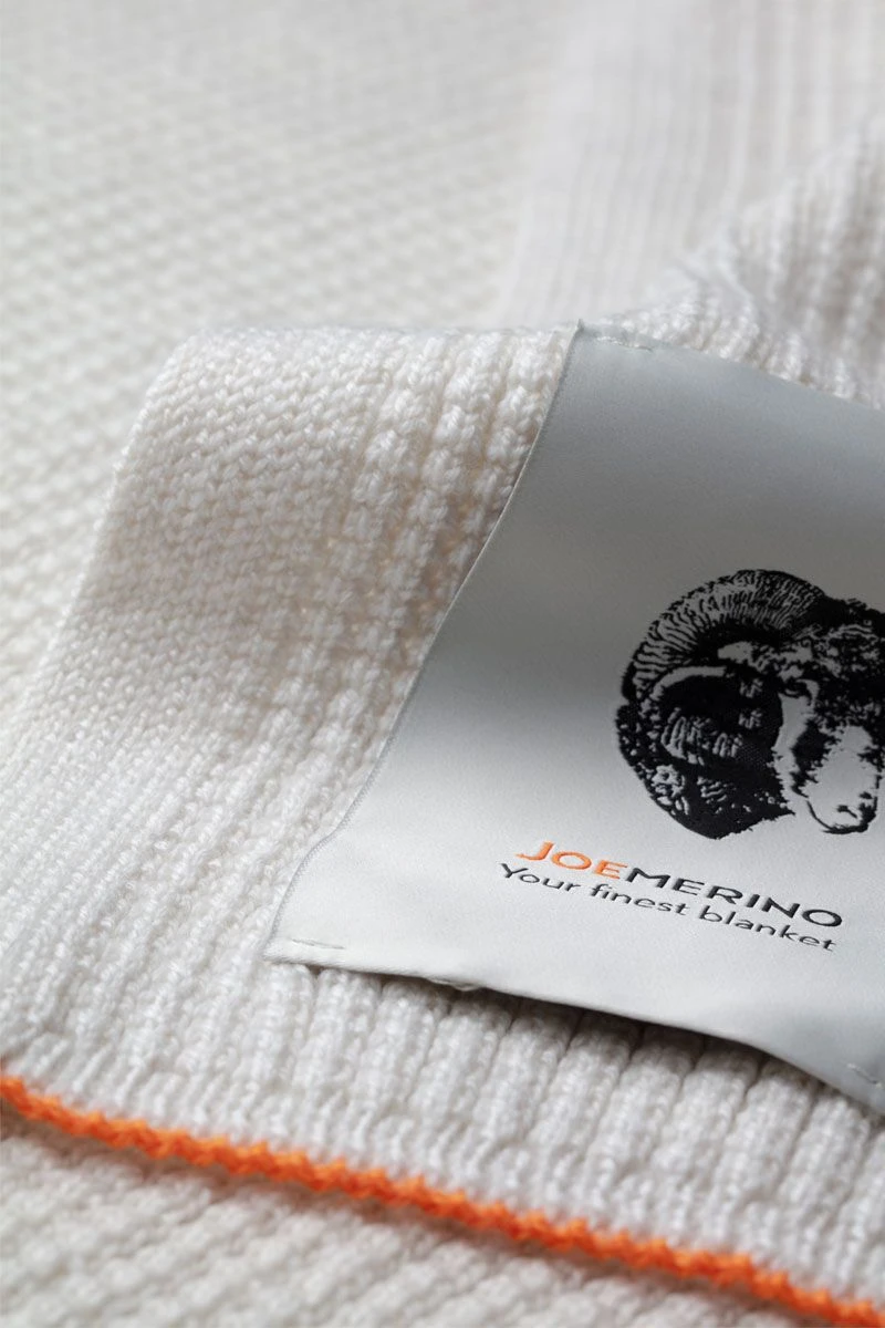 Niet spierwit, want wol laat zich niet bleken. Wit met een rijke warme gloed.