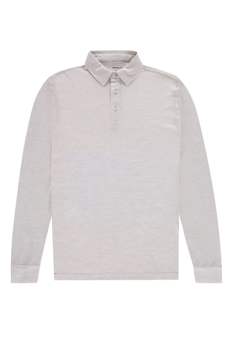 Niet spierwit want wol laat zich niet bleken. Een subtiele melange die een luxe streperigheid geeft. Wit als een wit strand.